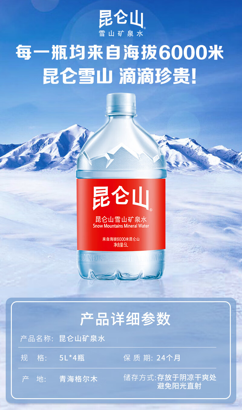 昆仑山雪山矿泉水5L*4桶 【泡茶水】