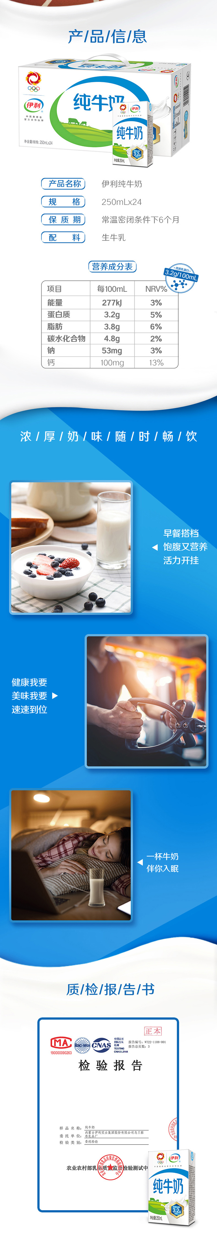 【伊利】纯牛奶 250ML*24盒