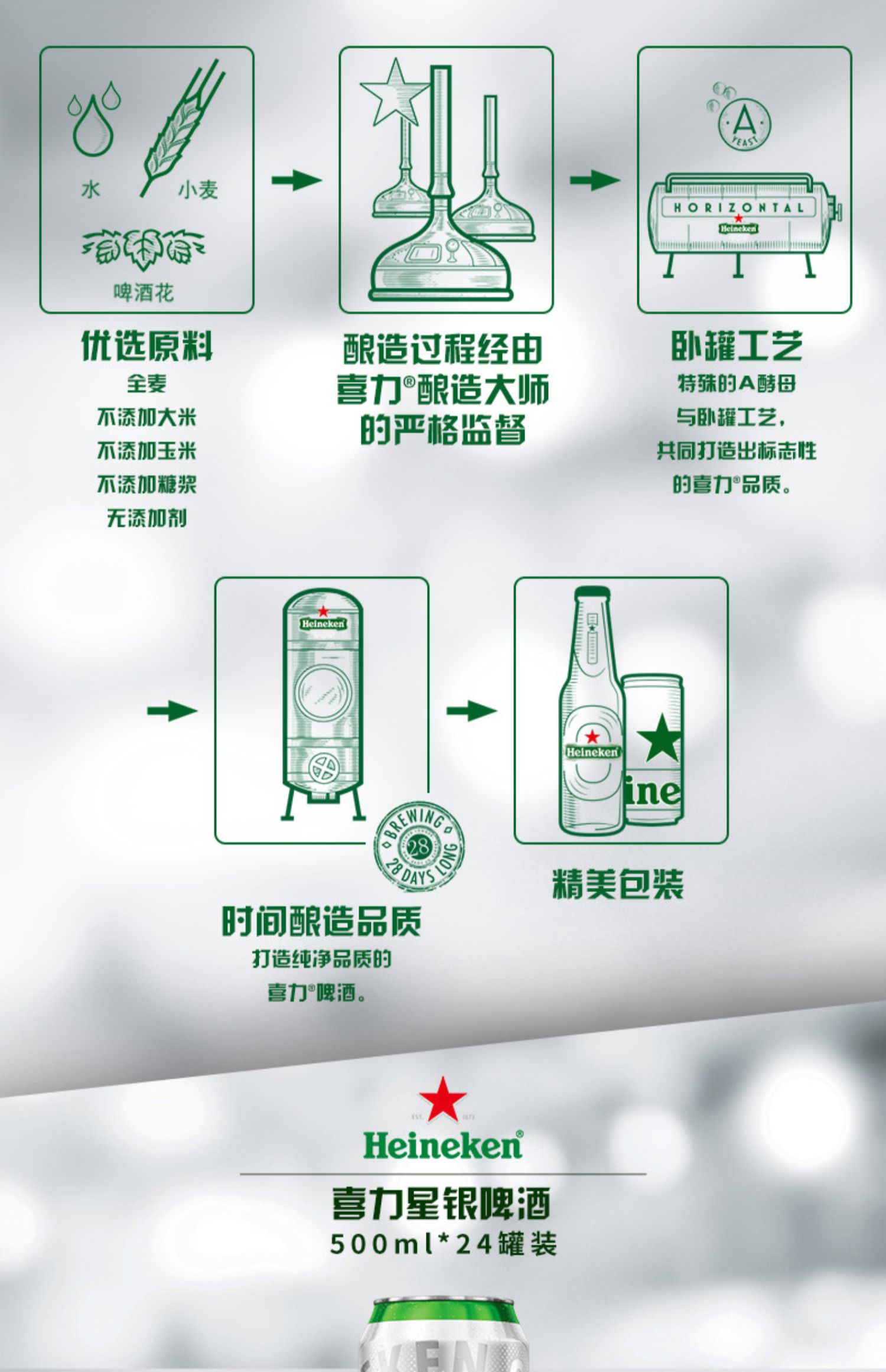 【喜力】星银啤酒(易拉罐)500ML*12罐