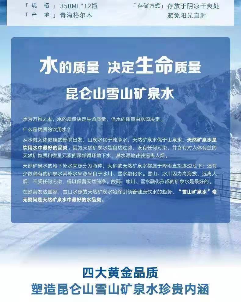 昆仑山雪山矿泉水 350ML*24瓶【尊享版】