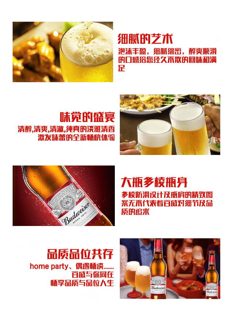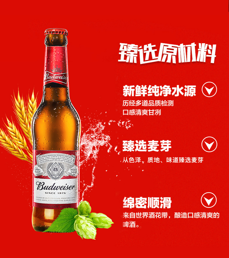 【百威】百威啤酒(玻璃瓶)330ML*24瓶