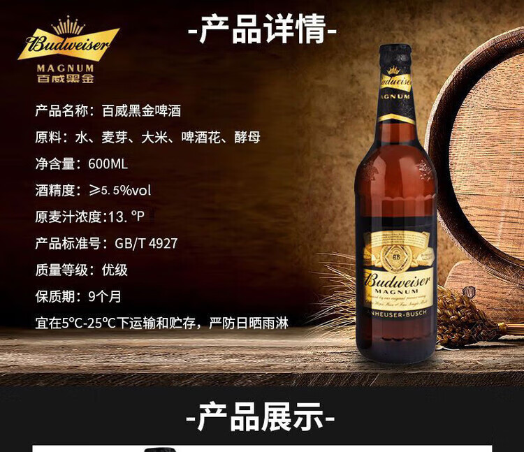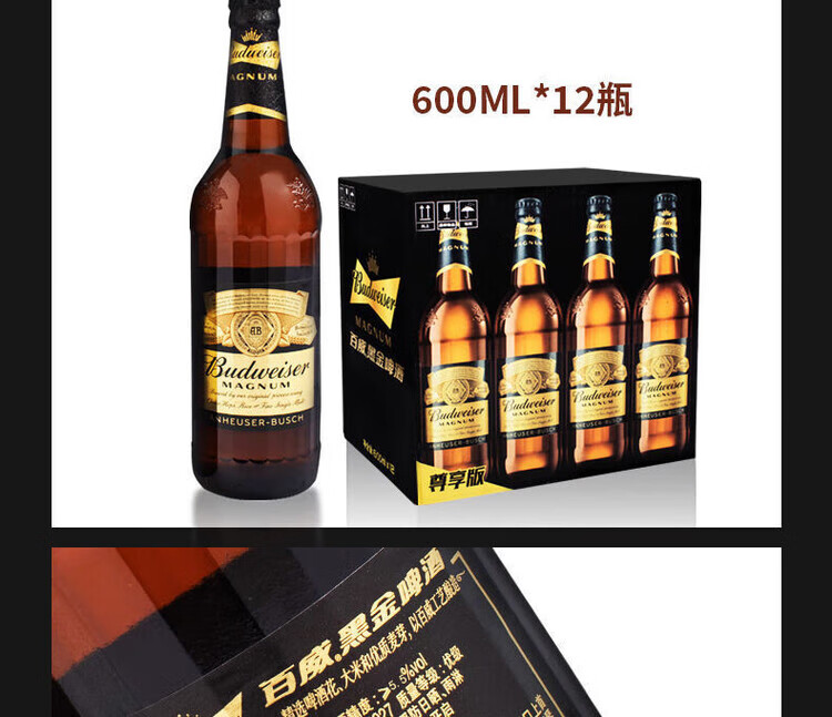 【百威】百威黑金啤酒(玻璃瓶)600ML*12瓶