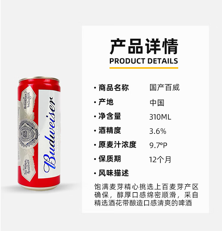 【百威】百威啤酒(易拉罐)310ML*24罐