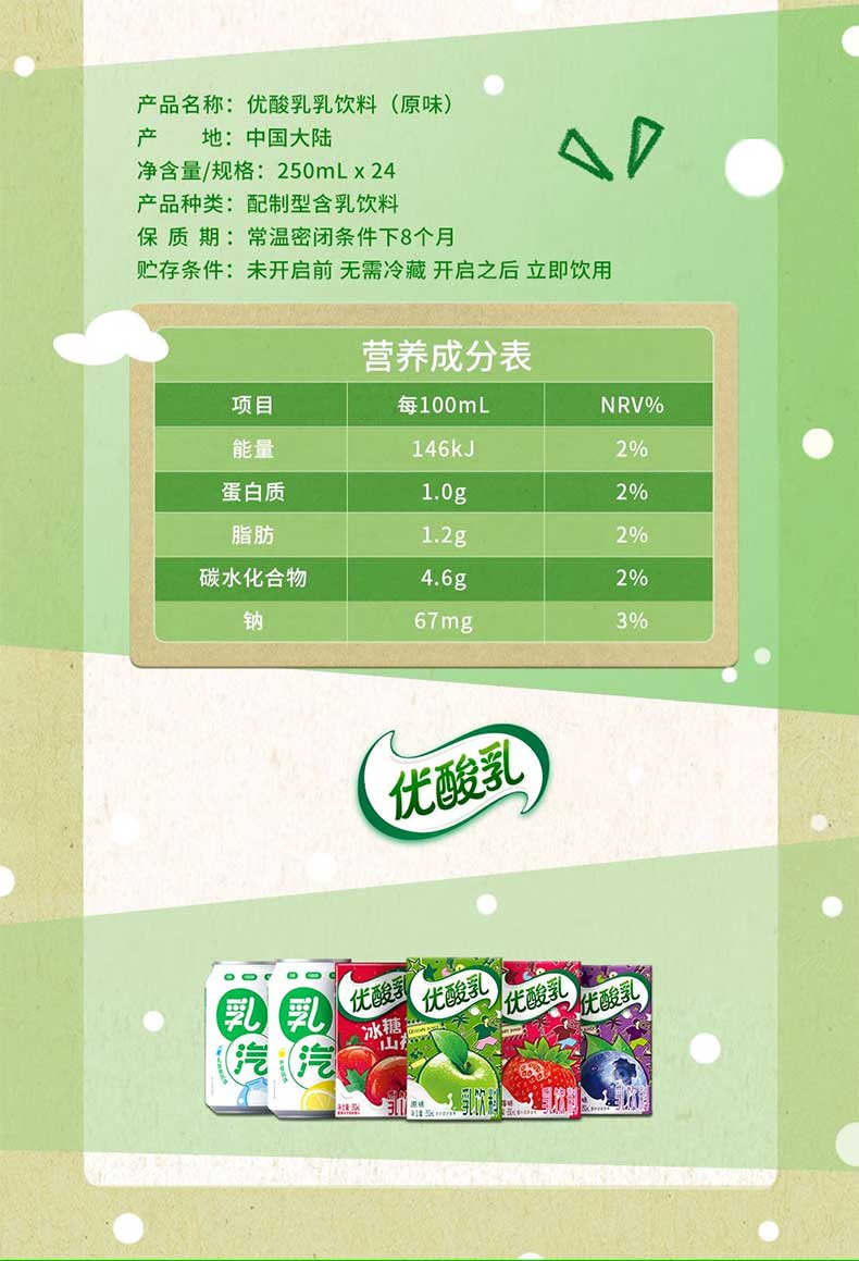 【伊利】优酸乳(草莓味) 250ML*24盒
