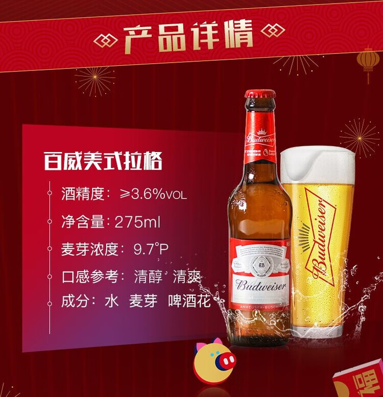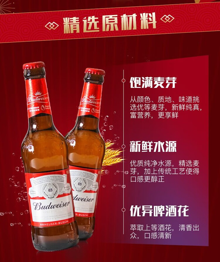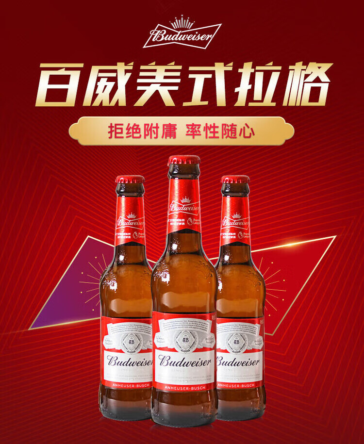 【百威】百威啤酒(玻璃瓶)250ML*24瓶