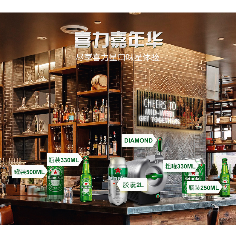 【喜力】喜力啤酒(玻璃瓶)250ML*24瓶
