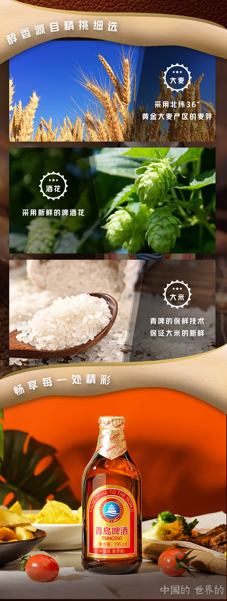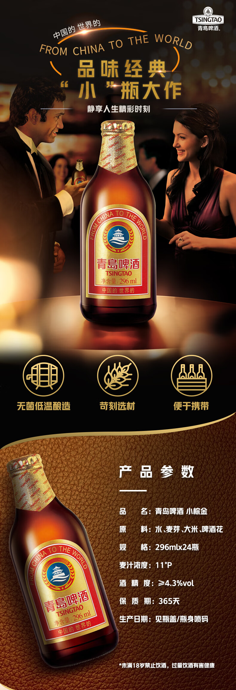 【青岛】小棕金啤酒(玻璃瓶)296ML*24瓶