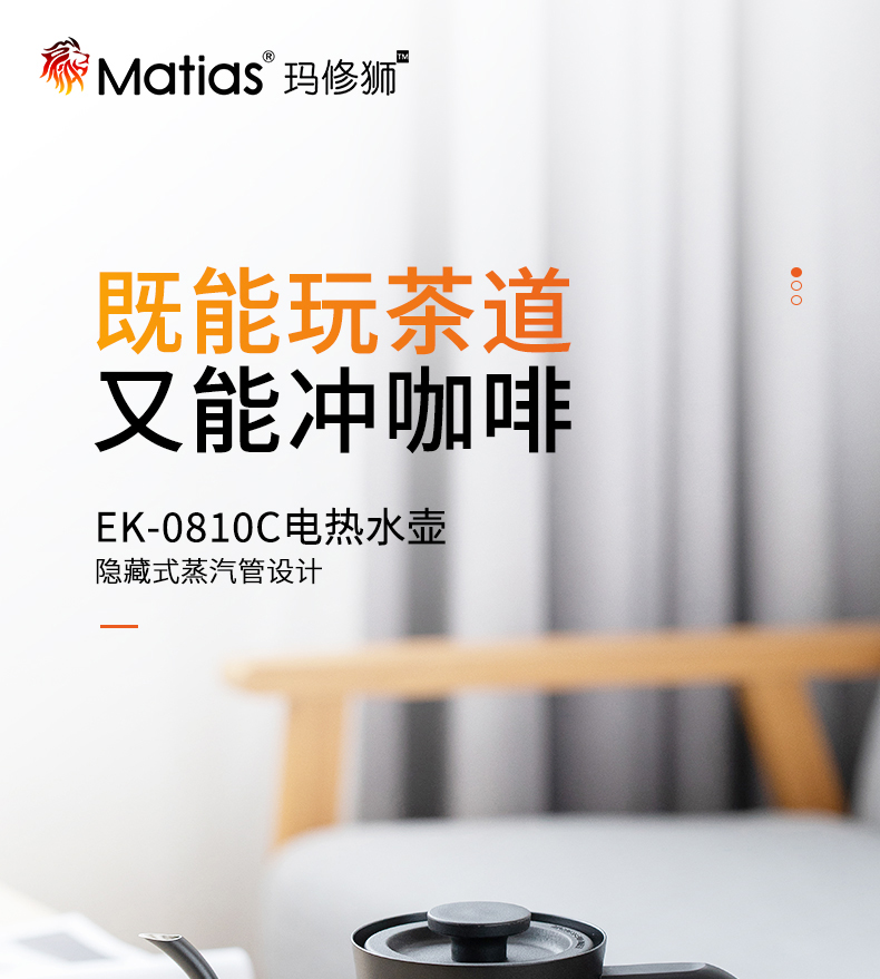 【Matias】EK-0810C 酒店专用-防水垢手冲咖啡茶艺细口长嘴壶泡茶电热水壶