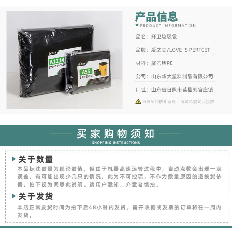 【七忻桐】黑色-平口大垃圾袋 90*110cm/33克